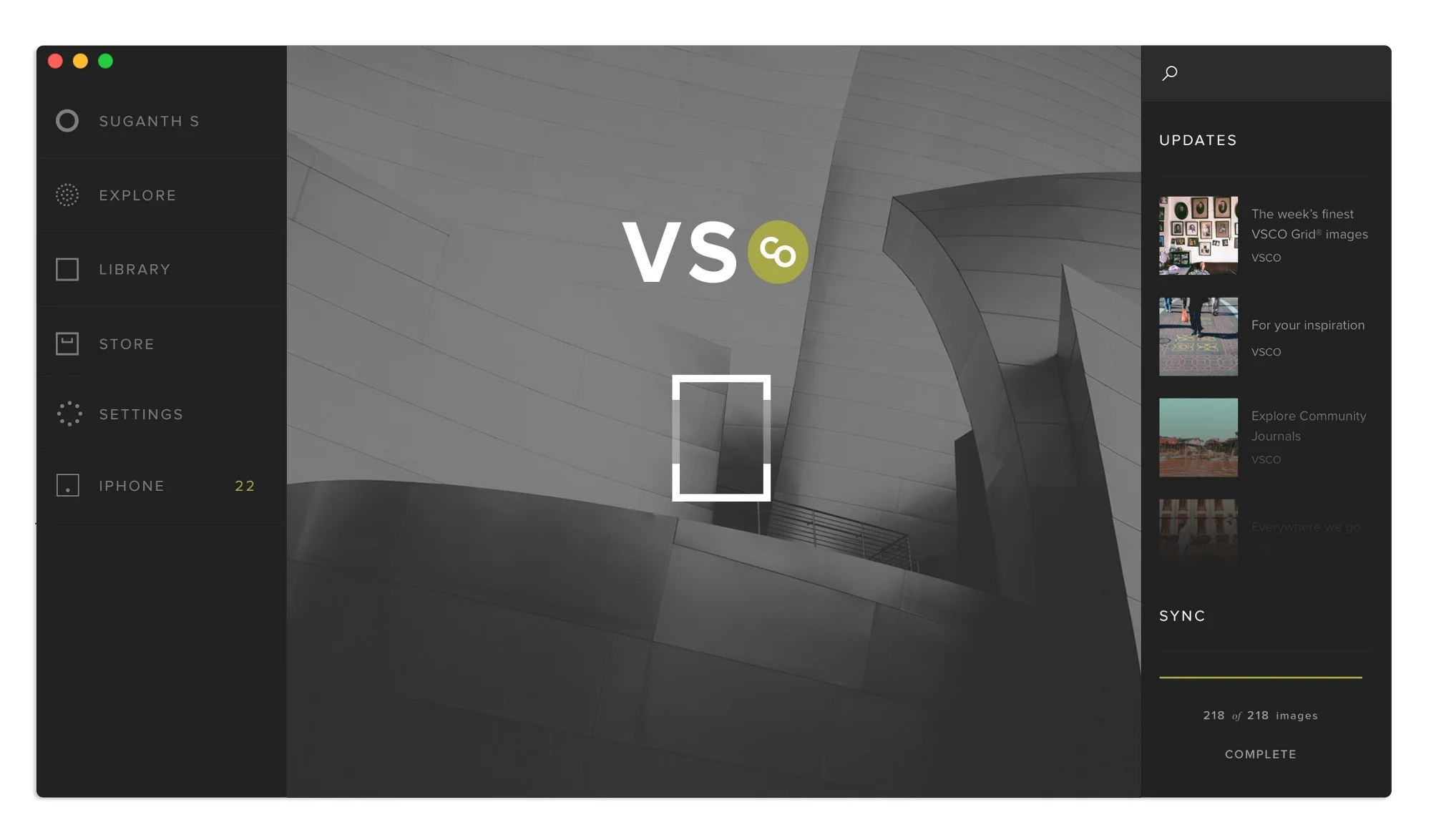 “VSCO suite for OS X. It’ll be a single app to sync and organise all your photos, also edit your photos with the same filters that you already been using in VSCO Cam. Additionally, you can upload your photos to your Grid, and write photo Journal based on them.”
