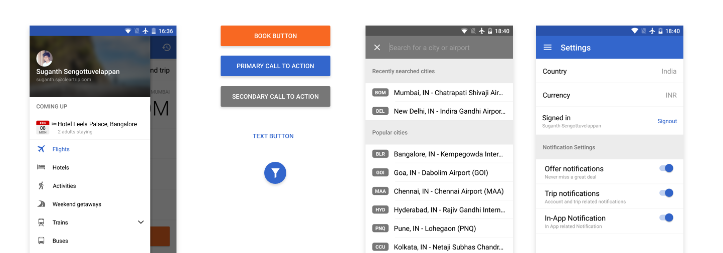 Google has well thought and built an amazing design framework which everyone can adapt and use. With very good development support, they offer a lot of SDK’s and components which made the material design truly feasible for Cleartrip.