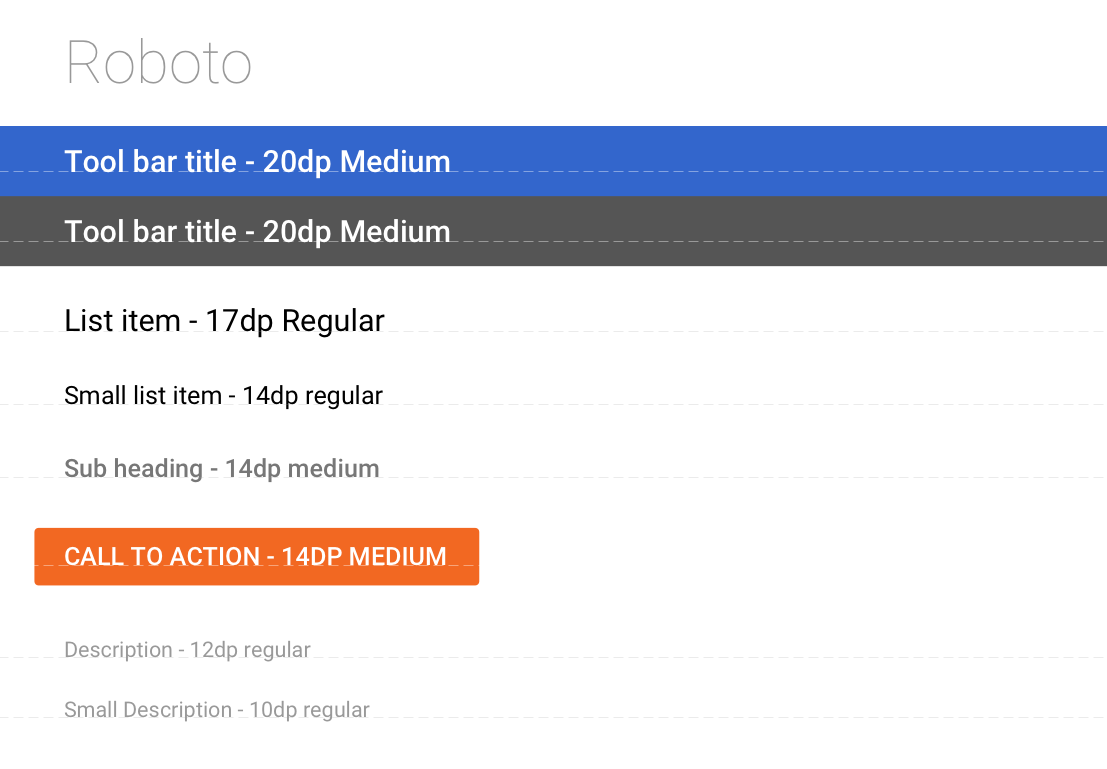 Typography: We were using Roboto in pre material version of the app, so it's easy for us to adapt the Material typography. We went through all the font sizes and weights and standardised them through out the Platform through this process