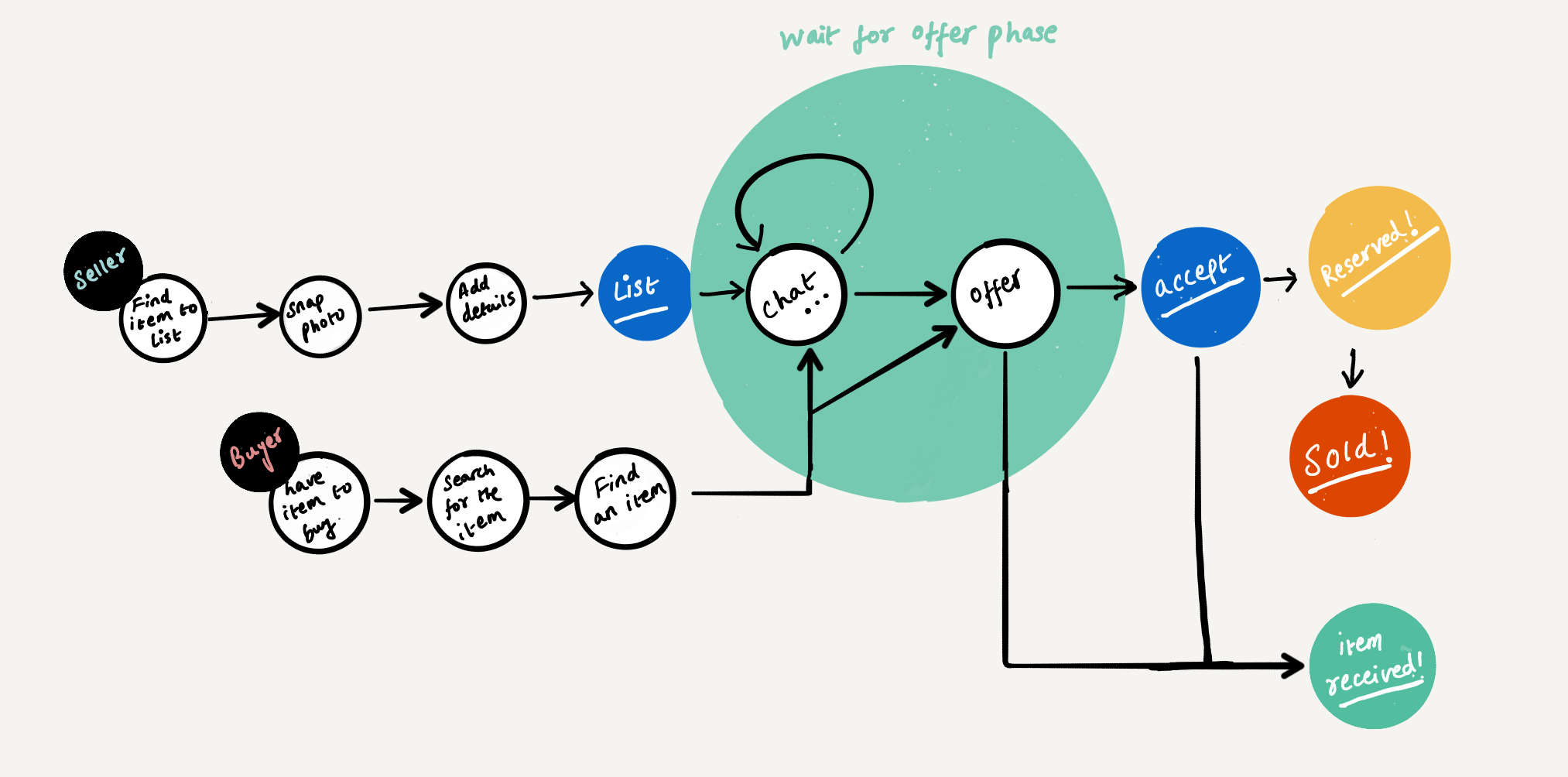 - Items stay reserved until the seller comes back to that listing or chat. The journey I designed lacked the nudge that makes the seller come back and mark the item as sold
