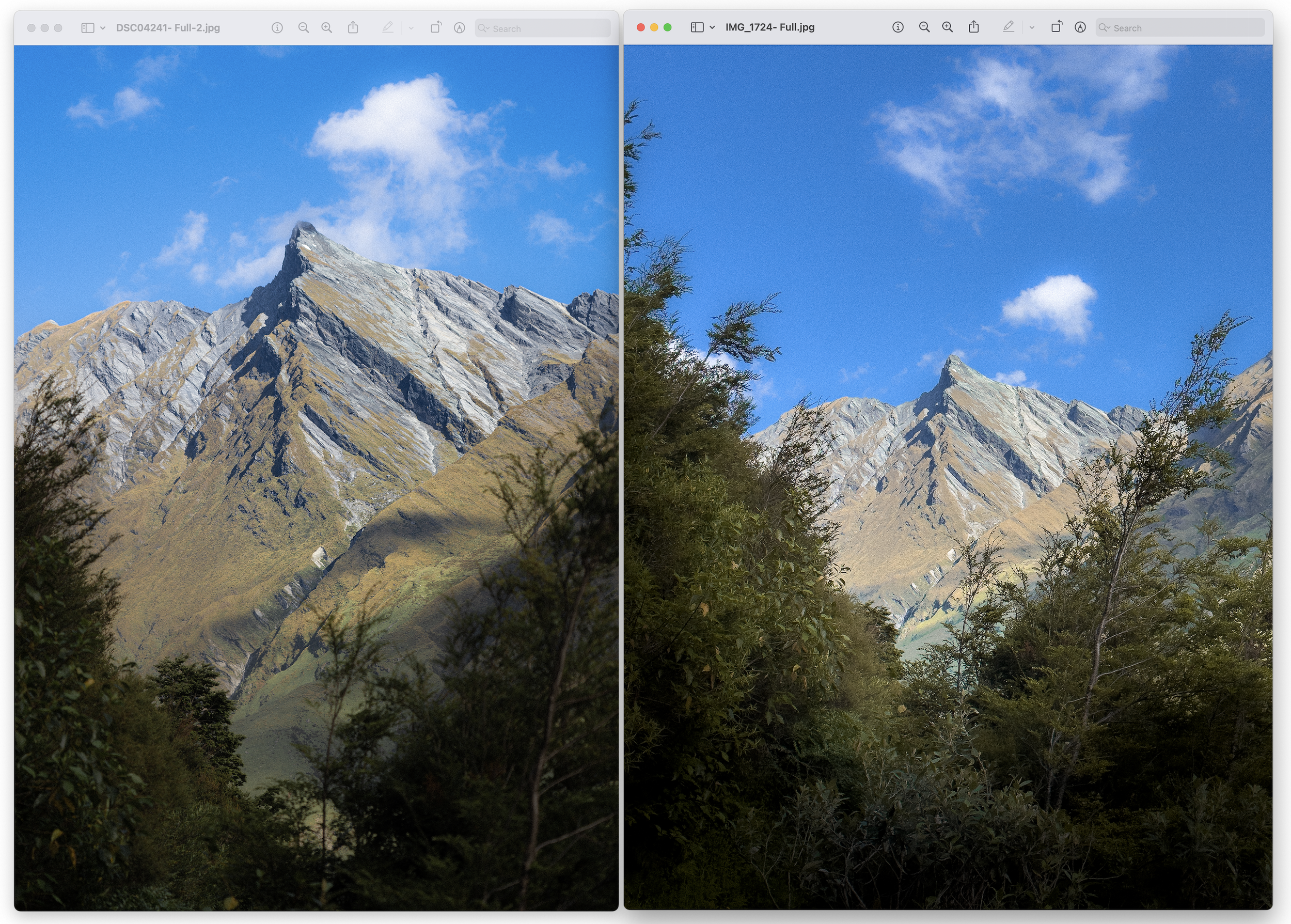 There was this one moment I knew how powerful iPhone is and how much it could affect my Sony camera usage. It’s one of my favourite views on the trip capturing this beautiful mountain (which reminded me of Switzerland’s Matterhorn). I tried to capture the shadows, the fauna around it and the beautiful patterns on the mountains. The photos were a few mins apart, but you can see how both cameras performed.
