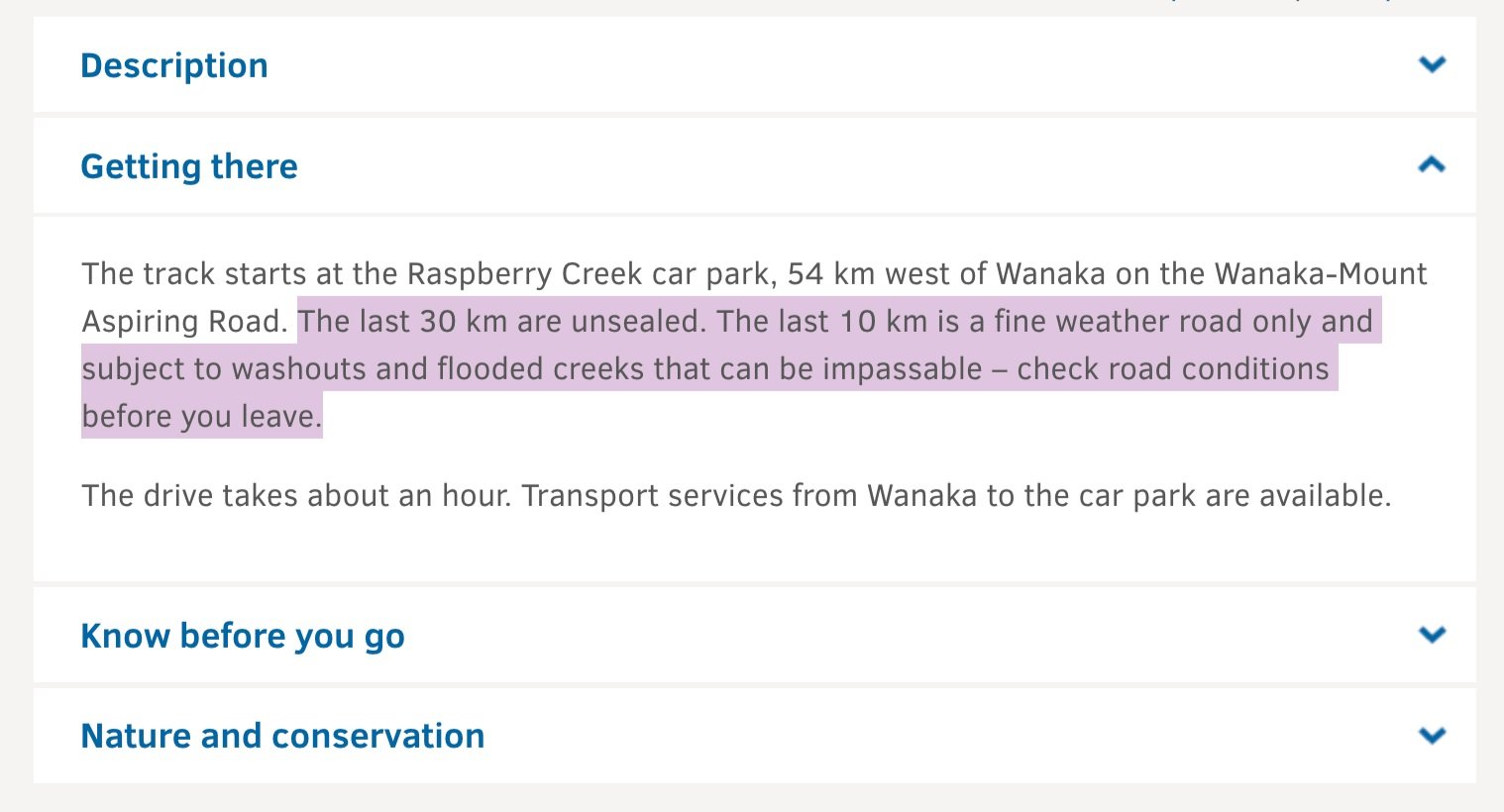 Turns out we missed out this fine print in the Department of Conservation’s track info